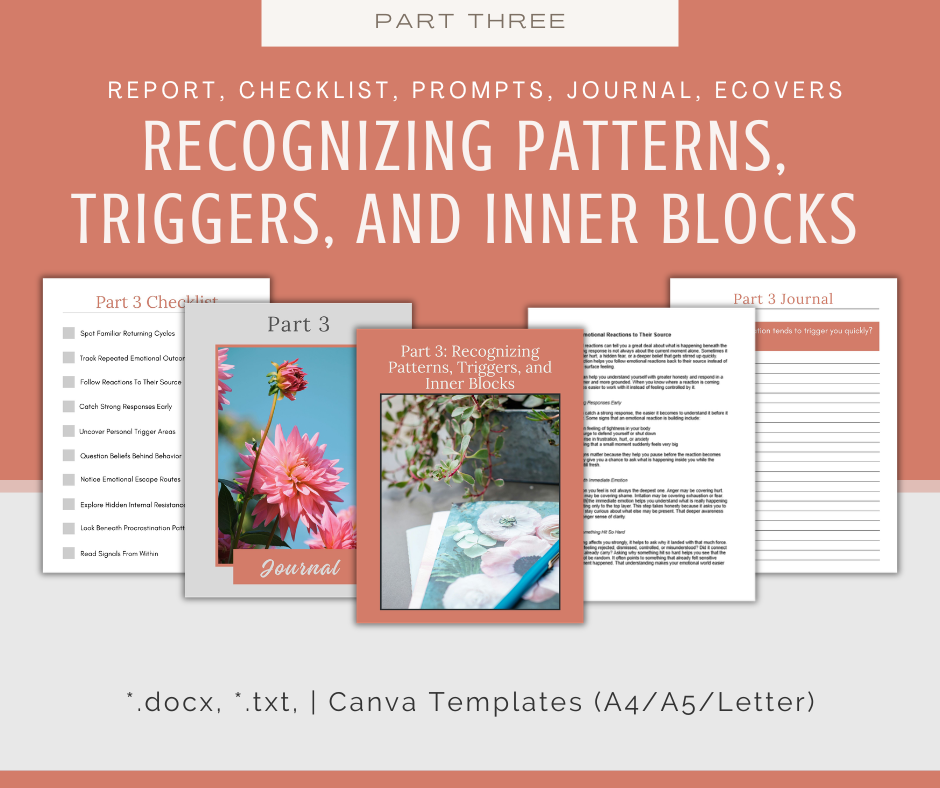 Each part of this ecourse also includes 25 journal prompts, a checklist, journal, and eCover.