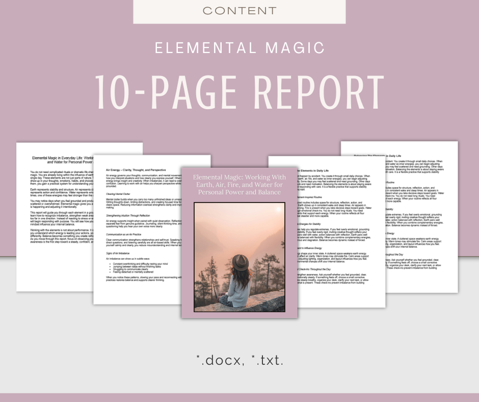 - Report: Elemental Magic in Everyday Life: Working With Earth, Air, Fire, and Water for Personal Power and Balance (Microsoft Word and Text)