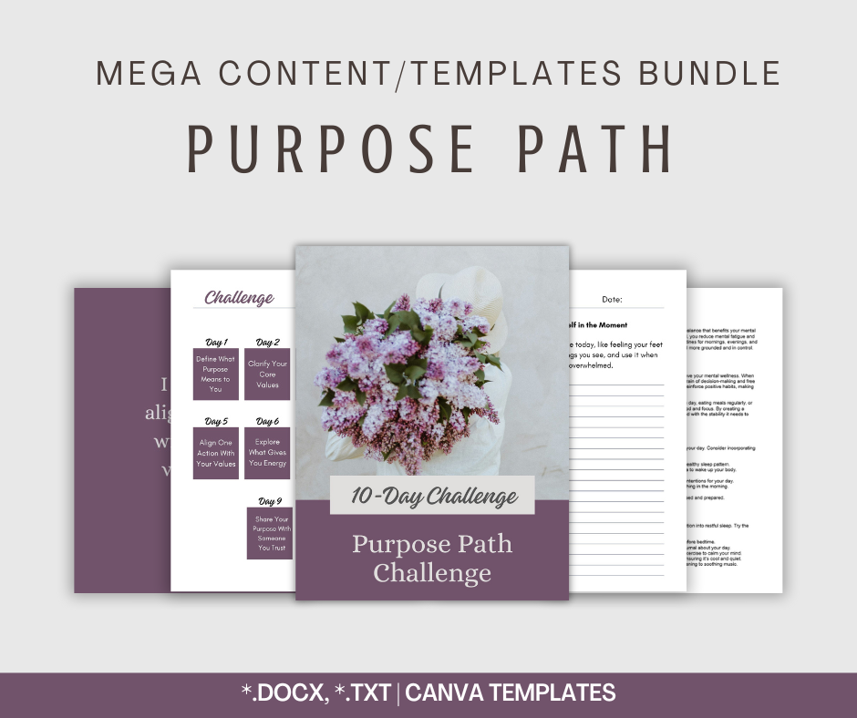 Get this brand new MEGA bundle that includes 3 products in 1: a content bundle, 4-part eCourse, and 10-day email challenge all about Purpose Path.