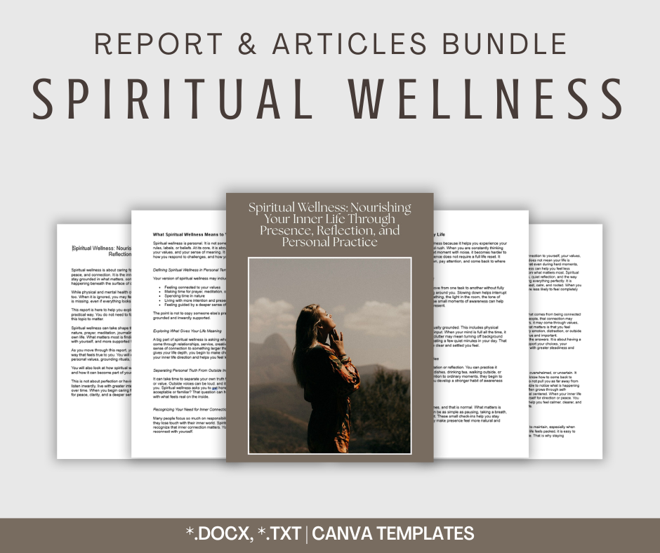 - Report: Spiritual Wellness: Nourishing Your Inner Life Through Presence, Reflection, and Personal Practice (Microsoft Word and Text)